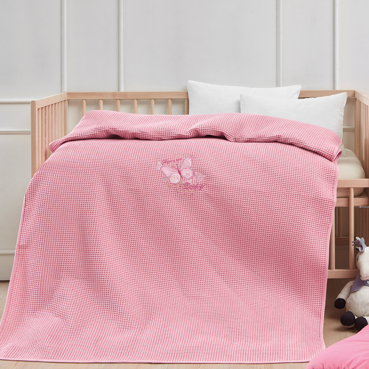 Κουβέρτα πικέ με παιδικό κέντημα 100×150. Η ποιότητά του είναι cotton 100%.