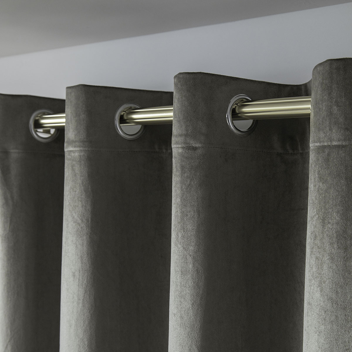 Κουρτίνα εσωτερικού χώρου, μονόχρωμη σε ασημί απόχρωση. Κατασκευασμένη από 100% polyester και ενσωματωμένα τρουκς για εύκολη τοποθέτηση. Το ύφασμα είναι velvet σκίασης. Διακοσμήστε την σε όποιο χώρο του σπιτιού σας επιθυμείτε και δημιουργήστε ένα ξεχωριστό στυλ.