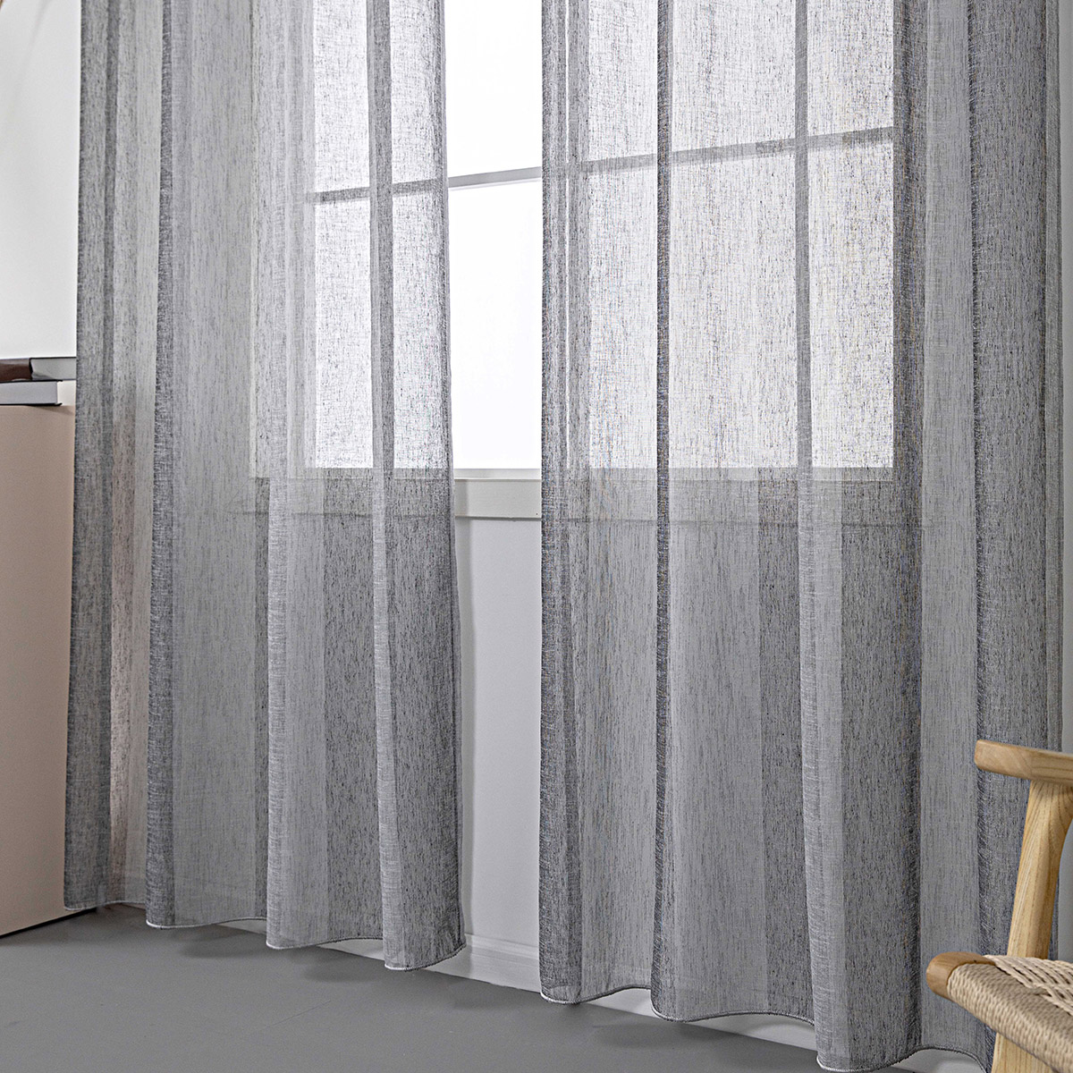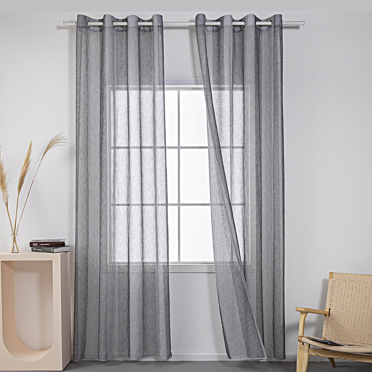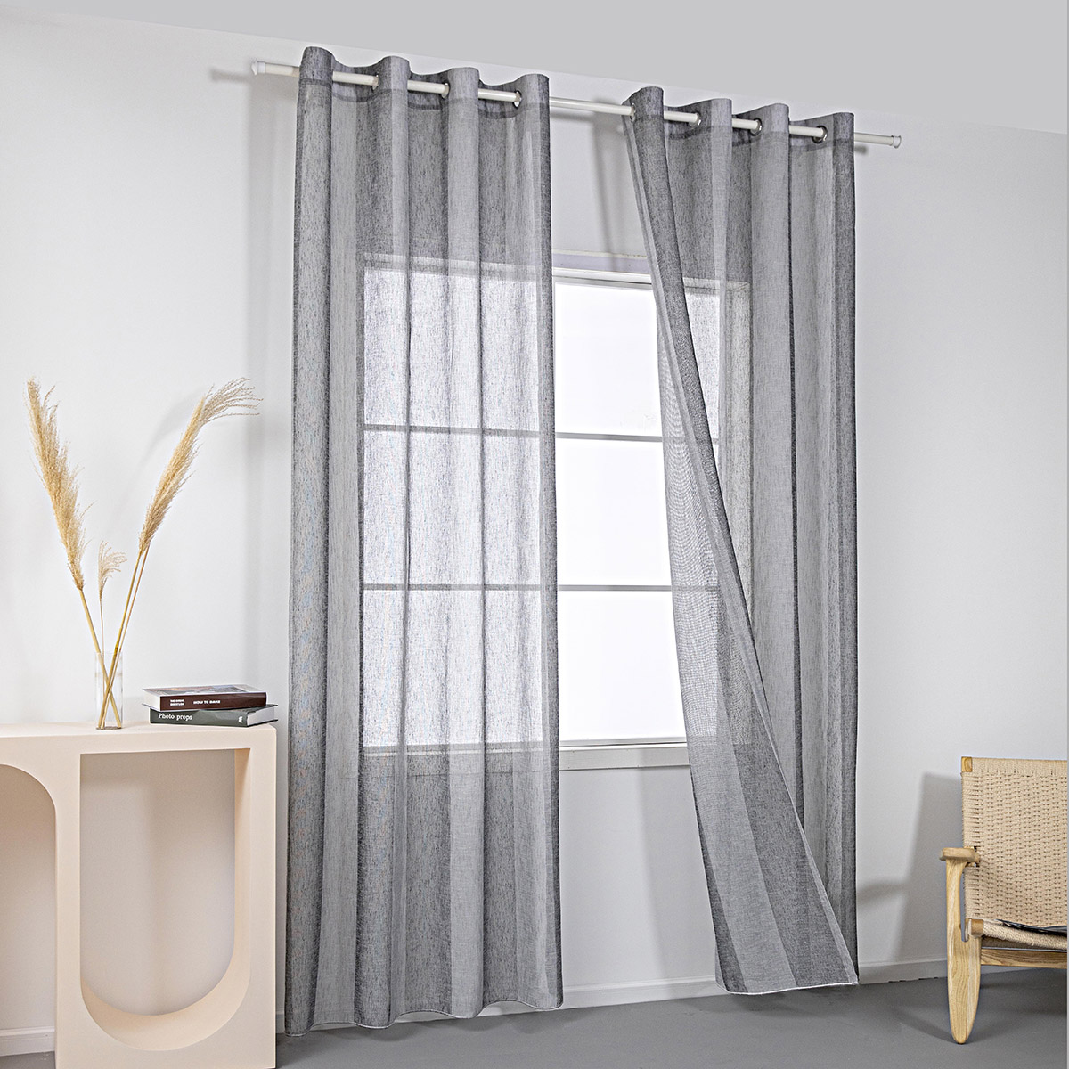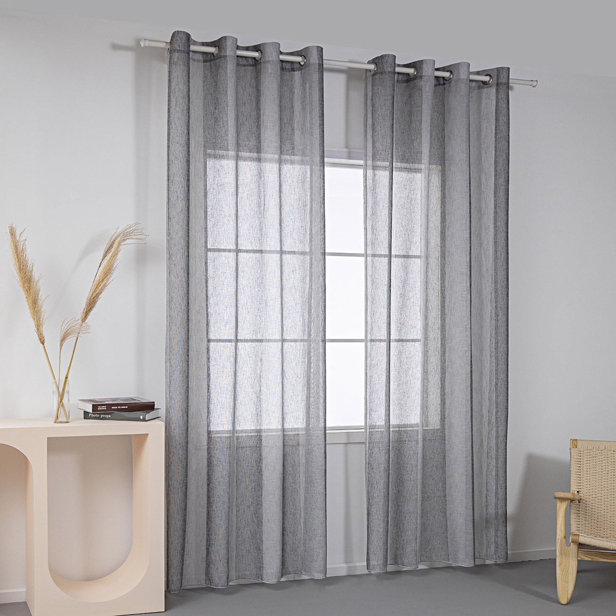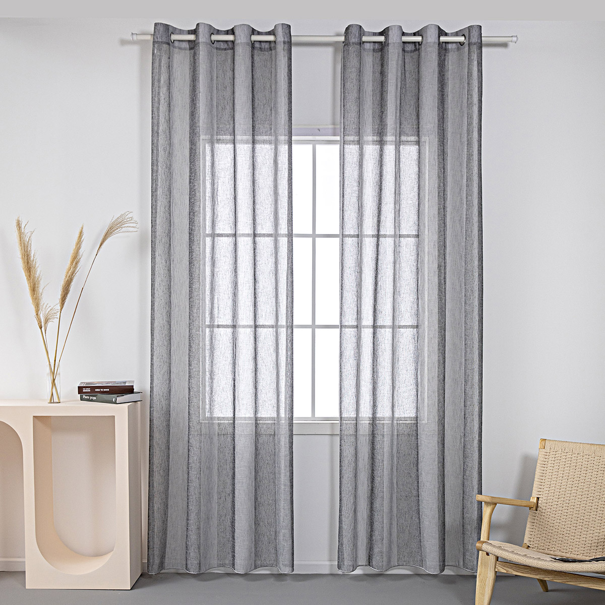 Beauty Home Κουρτίνα γάζα δίχρωμη με 8 μεταλλικούς κρίκους Art 8442 140×270 Γκρι
