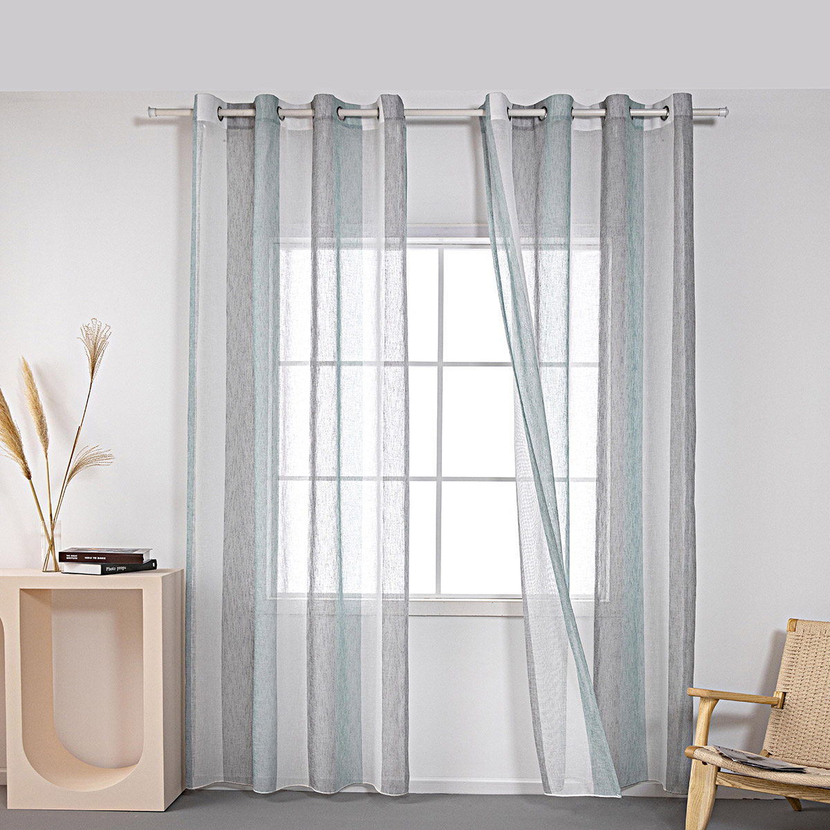 Beauty Home Κουρτίνα γάζα δίχρωμη με 8 μεταλλικούς κρίκους Art 8442 140×270 Βεραμάν