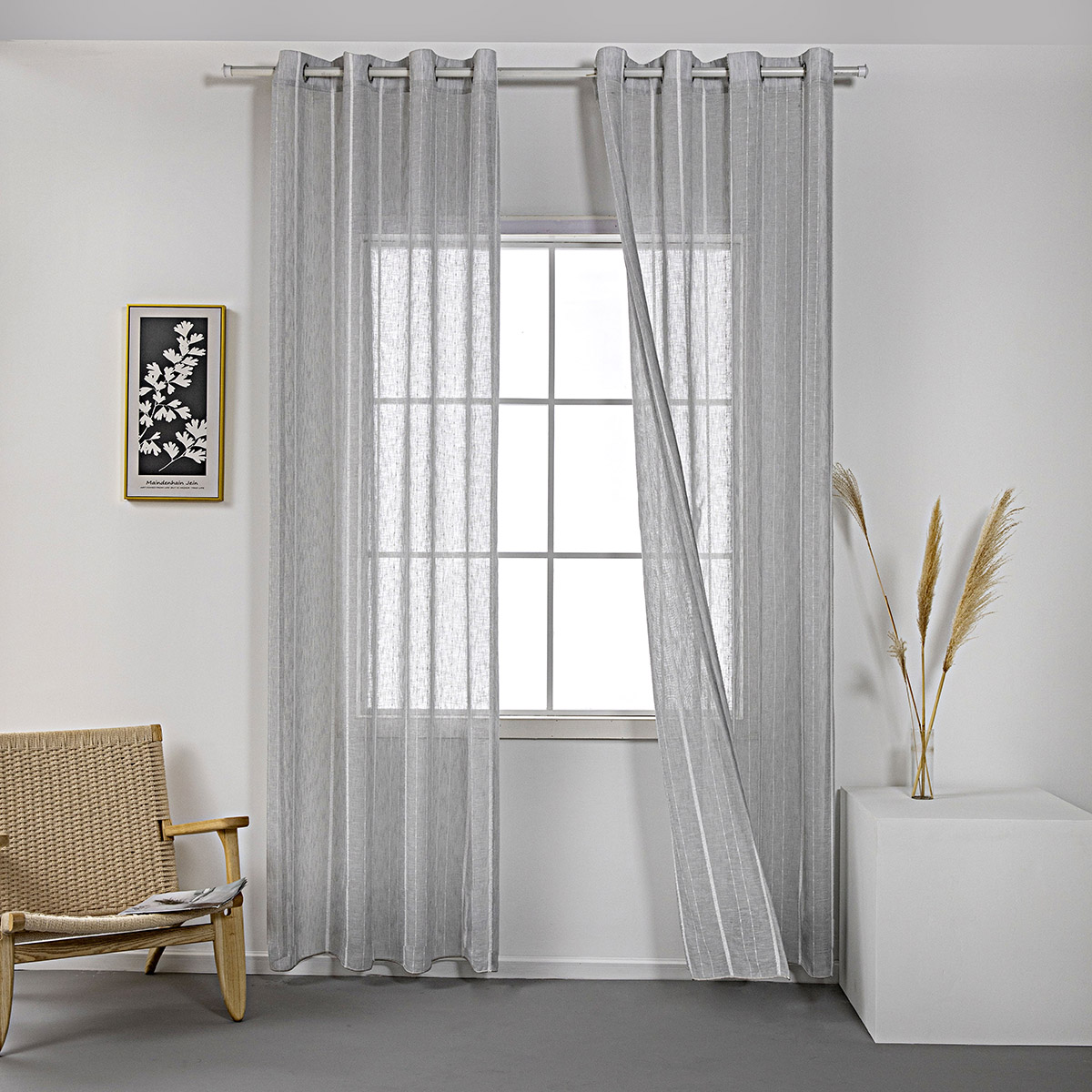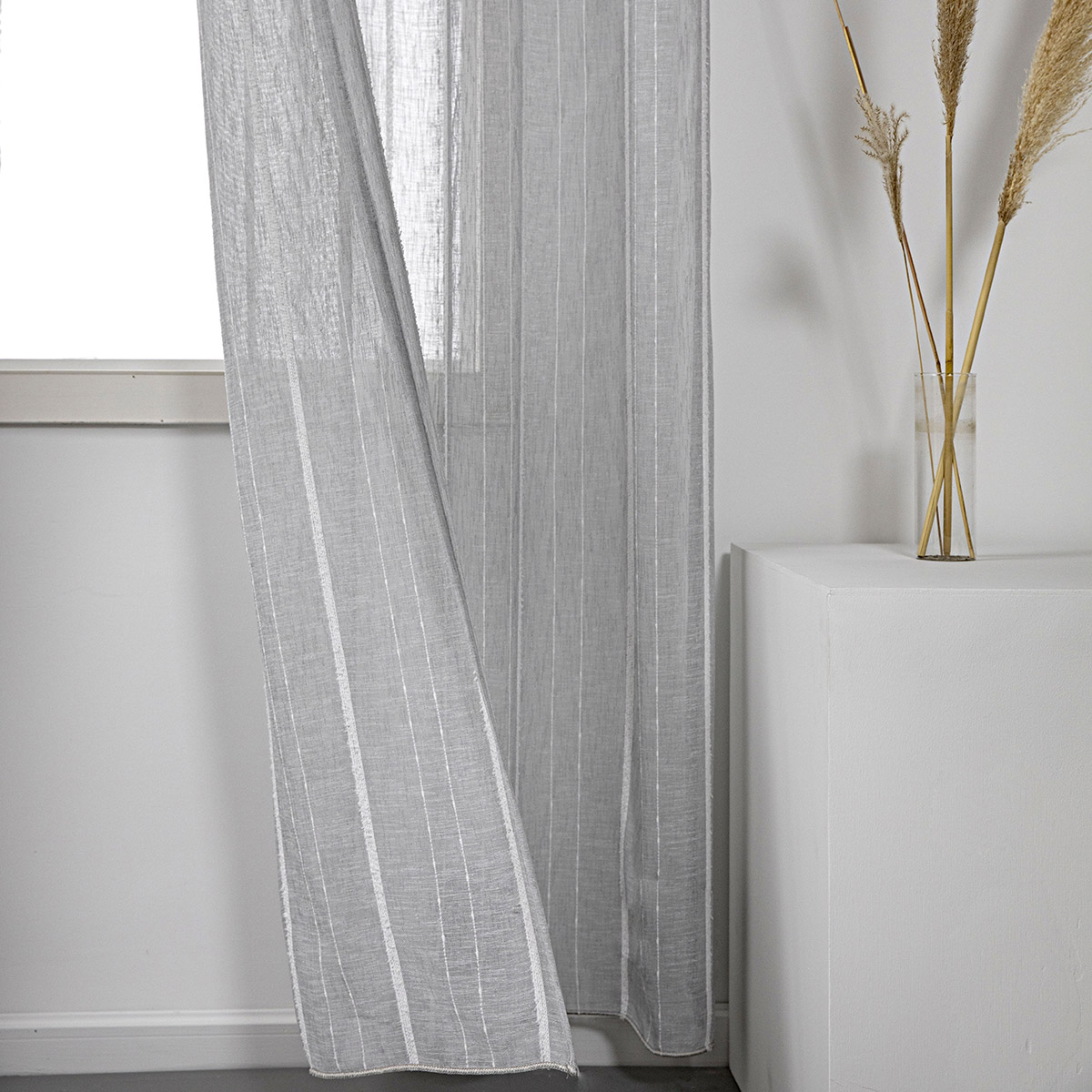 Beauty Home Κουρτίνα γάζα με σενίλ και 8 μεταλλικούς κρίκους Art 8441 140×270 Γκρι