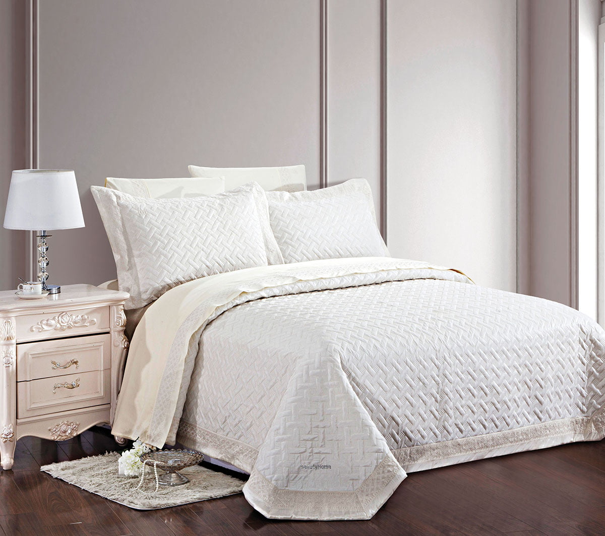 Νυφική βαλίτσα σετ 7 τμχ Phebe. Το σετ περιλαμβάνει 1 βαλίτσα λευκή που περιέχει: 1 τεμάχιο κουβερλί σε διάσταση 230×250, 1 τεμάχιο πανωσέντονο σε διάσταση 240×260, 1 τεμάχιο κατωσέντονο σε διάσταση 240×260 και 4 τεμάχια μαξιλαροθήκες σε διάσταση 50×70. Η ποιότητά του είναι microfiber κεντημένο