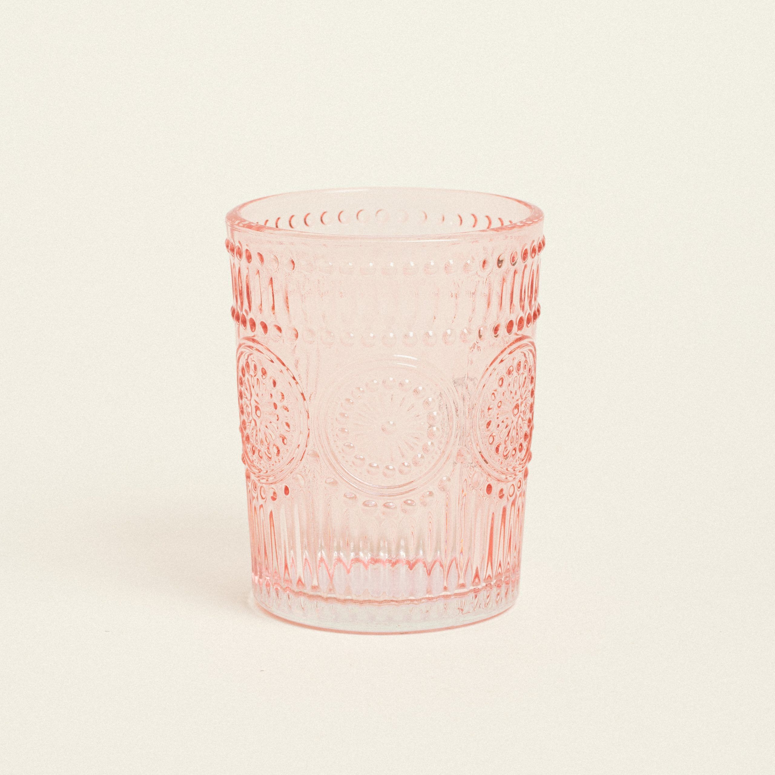 Γυάλινο ποτήρι με ανάγλυφο σχέδιο σε σάπιο μήλο απόχρωση ( 8 x 10 cm), ιδανικό για να σερβίρετε νερό ή ποτό. Συνδύασε το με τα υπόλοιπα προϊόντα της κατηγορίας για ένα ολοκληρωμένο art de la table.