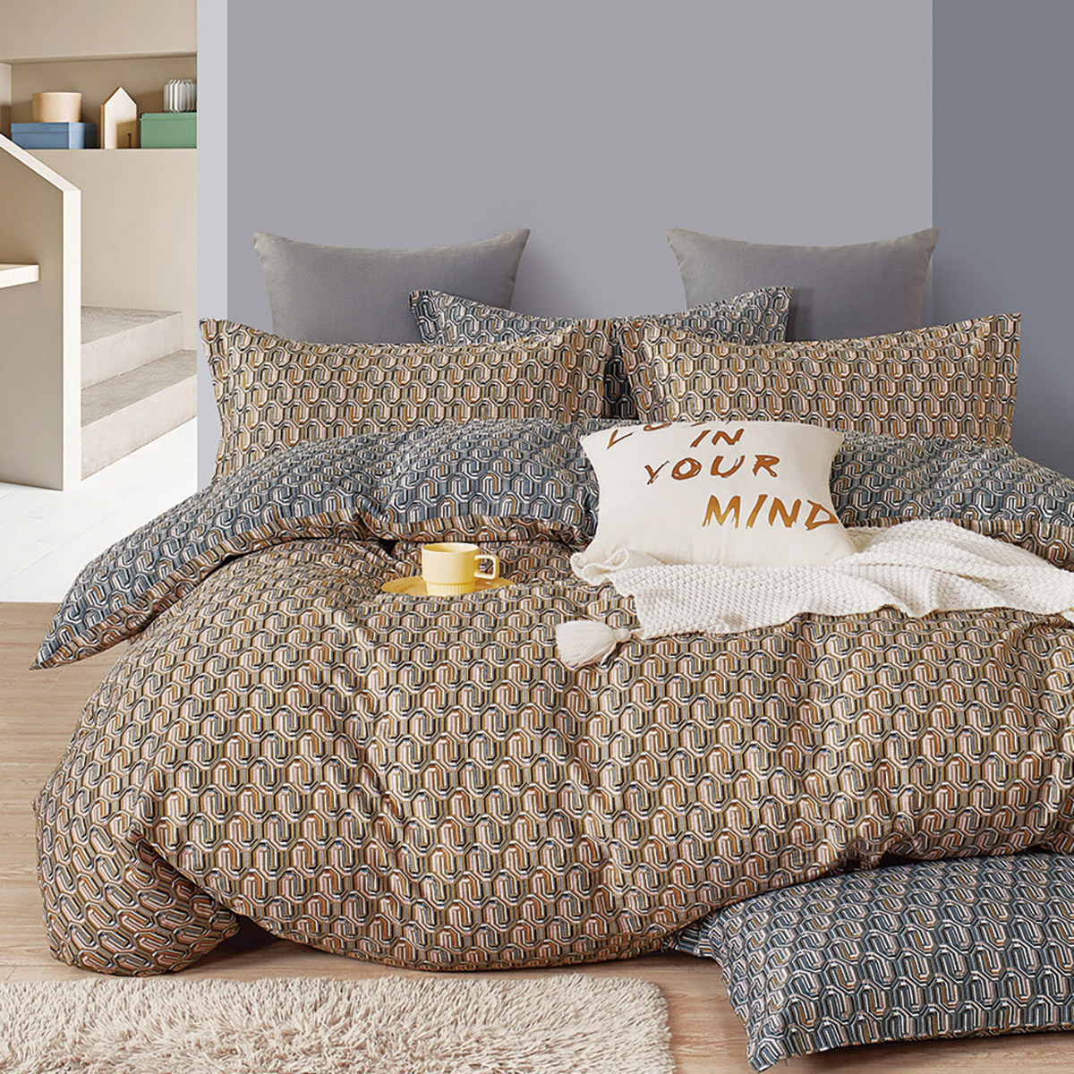 Σετ παπλωματοθήκη υπέρδιπλη με φερμουάρ . Το σετ περιλαμβάνει 1 τεμάχιο παπλωματοθήκη σε διάσταση 220×240 και 2 τεμάχια μαξιλαροθήκες σε διάσταση 50×70+5. Η ποιότητά του είναι 100% Βαμβακοσατέν . Κλωστές ανά ίντσα: 205