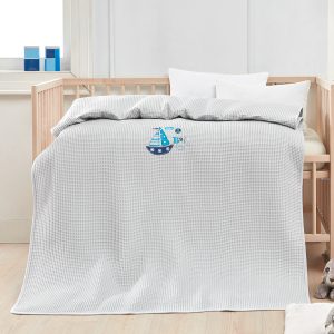 Beauty Home Κουβέρτα πικέ με κέντημα Art 5310 80×110 Γαλάζιο